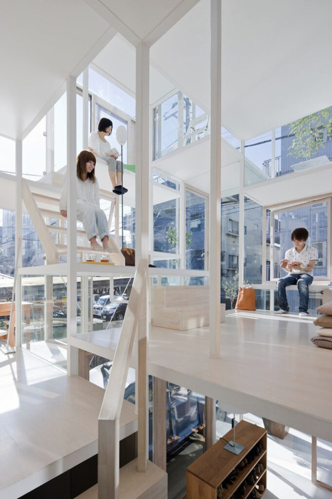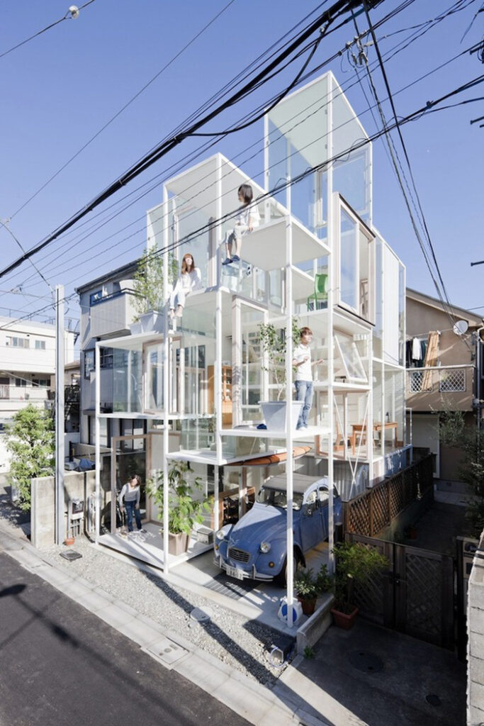 Construit à Tokyo par le cabinet d’architectes Sou Fujimoto, une mini maison urbaine tout en verre et acier blanc est un projet unique en son genre et un des plus difficile à faire accepter à de futurs constructeurs. Très peu d’intimité dans cette sculpture verticale moderne si peu conventionnelle au sein d’une cité urbaine surpeuplée.